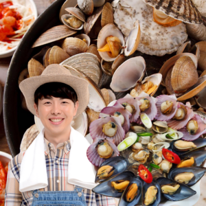바지락, 생합, 모시조개, 파, 고추, 무, 바지락맛 액상 소스로 구성되어 있습니다.