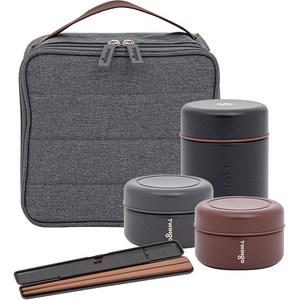 커먼랩스 스텐 2단 도시락통 + 보온보냉백 세트, 브라운
